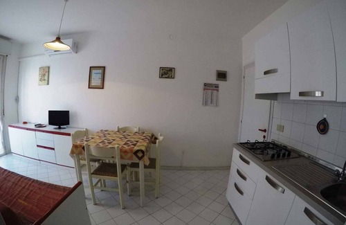 The holiday apartment is located in an apartment house and is furnished in a functional style. The property is located in a busy environment, in the town centre. Also due to its sunny location the domicile is popular.LocationRosolina Mare. The landlord does not live in the house or on the property. Access is directly from the main road (asphalted). Parking is available on the property. Uncovered Specialair conditioning. TV reception takes place via antenna.For your safety, the accommodation is equipped with CO2 detector, smoke detector and fire extinguisher. Dogsallowed, EUR 25.00/pet per stay. DistancesShopping 50 m, restaurant 50 m, town center 1 m. bank in Piazza San Giorgio 1 m. railway station in Rosolina 11 km. airport in Venezia 50 km. pharmacy in Via dei Ligustri 1500 m. doctor in Viale dei Pini 1500 m. Main road 2 km. Children's playground 50 m. In summer: Bathing possibility (private beach 50 m in Bagni dal Moro featuring sand). dog beach in Bagno Tamerici 1000 m. Villaggio Rosapineta: tennis, horse riding each 1500 m. golf 8 km. DivisionHoliday apartment, 1 floor, 3 rooms (including 2 bedrooms), 38 sqm, in total 6 beds (including 2 additional beds). RoomThe entrance to your holiday apartment is located on the 1st floor