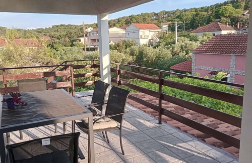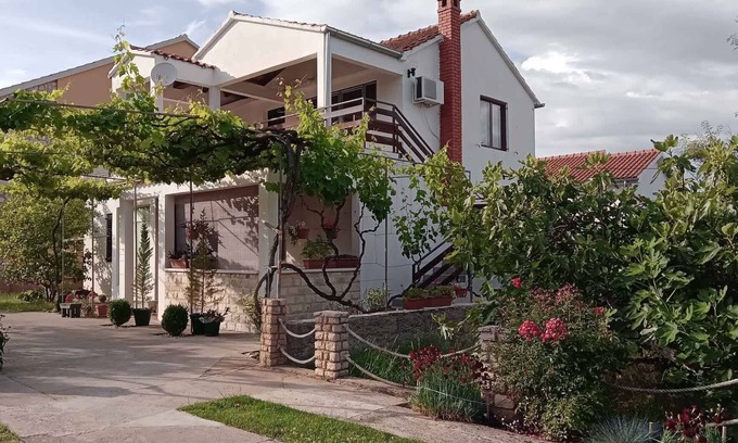 The holiday apartment is located in a detached single-family home and is furnished in a typical country style. Available for shared use: barbecue facilities and terrace.LocationKraj/Insel Pašman. The holiday apartement is located on a garden plot. The landlord lives in a separate building on the property. Access is via a path (asphalted). Parking is available on the property. Specialair conditioning.Facilities: internet access (WLAN). TV reception takes place via satellite. SMART TV Dogsnot allowed. DistancesShopping 2,3 km, restaurant 2,3 km. In summer: Adriaitic sea (beach 300 m in Kraj). DivisionHoliday apartment, 1 floor, 3 rooms (including 2 bedrooms), 60 sqm, in total 4 beds. RoomThe entrance to your holiday apartment is located on the 1st floor