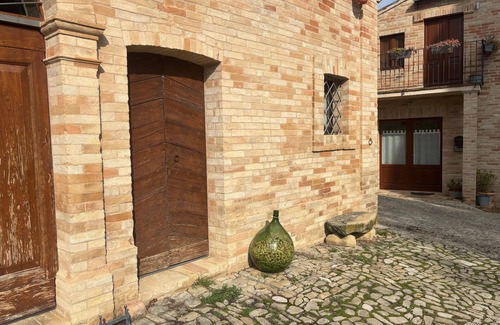On the ground floor with a large bedroom. King size bed and a single bed, Satellite television and suitable for people with mobility problems and adapted for wheelchair users, with the bathroom with the facilities.There is a complete, well equipped kitchen with fridge, freezer, microwave, all the gear and the coffee espresso machine, provide of all the necessary amenities for make coffee, tea and wild chamomile.I sassi di San Giuseppe, a beautifully restored 18th farmhouse, set in an area of extraordinary natural beauty with views over the rolling country, distant hilltop villages and the Monti Sibillini. The perfect place to relax and enjoy rural life, overlooking unspoilt scenery and countryside, whilst benefiting from all the comforts of a modern villa.The apartments are finished to restore and respect the ancient style. They are comfortable and the rooms have the independent heating.The garden is beautiful and have trees that are centuries old, with outdoor furniture, sun loungers, a large umbrella, tables and seats, and a barbecue. The courtyard in front of the house has a typical stone floor. There is also a large area where the farmer keeps the farmyard animals.