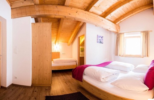 The house lies at an altitude of 1400 metres in the Mühlwalder Valley, at the entrance to the Lappacher waterfalls. Enjoy the picturesque mountain backdrop and the soothing peacefulness.The apartment is on the second floor and has a large living room (30m²), with a balcony facing east, a large dining table and a sofa. For occupancy with six people, there are two single beds instead of the sofa. The kitchen has a dishwasher, a glass ceramic hob, a fridge with a freezer compartment, pots, pans, crockery, cutlery, a mixer, and a radio. The apartment has a double bedroom with a beautiful view of the mountains, as well as another large double bedroom with its own bathroom with a shower, WC and washbasin. There is a spacious bathroom with a shower, WC, bidet, washbasin and hairdryer.In the garden there is a large playground with a swing, slide, sandpit, trampoline and seesaw. There are plenty of deckchairs for relaxing. The hares Flicki and Flocki, the cat Mimi and the dog Lena look forward to being stroked.The rental price includes hand towels and bedlinen, wireless Internet access and the final cleaning. A cot, highchair, baby monitor and a playroom are available for babies and toddlers.200 metres away there is a large forest playground and 500 metres away the mountain village of Lappach with a bar, restaurant and a grocery shop. Right in front of the house you can go one extended hikes in the Zillertal mountains or to the nearby mountain meadows, and in winter on ski tours and snow shoes hikes.Features of the property: 2nd extra bedOutside area: Garden available; Grill; Parking spaces: 1; Terrace;House information: 2nd double bed; 2nd single bed; Agritourism; Altitude above sea level: 1400 m; Bathrooms: 2; Bedroom; Year of construction: 2013;Living area: Radio; Safe; Satellite-tv;Bath/WC: Hairdryers; Sauna near by; Shower; Shower; Toilet; Toilet;Kitchen: Coffee machine; Dishwasher; Freezer; Fridge; Microwave; Stove; Toaster;Other: Baby chair; Child/baby bed; Dryer nearby; Heating; On the farm; Owner lives on the property; Pets allowed: max. 2; Wifi all-inclusive package;Distances (linear, approx.): Cable railway: 18,00 km; Distance Bar / Club: 1,00 km; Distance cross-country skiing: 0,50 km; Distance to airport: 90,00 km; Distance to cable car: 18,00 km; Distance to cafés/ restaurants: 0,50 km; Distance to fishing: 5,00 km; Distance to food market: 5,00 km; Distance to golfcourt: 30,00 km; Distance to lake: 5,00 km; Distance to next public transport stop: 0,50 km; Distance to railway station: 30,00 km; Distance to ski bus: 1,00 km; Distance to ski run: 18,00 km; Distance to ski school: 18,00 km; Distance to swimming pool: 14,00 km; Distance to tennis court: 5,00 km; Near ski: 1 m; Riding facilities: 15,00 km;SurroundingNearby sports facilities : Golf course, Skiing (alpin)Garden and outdoorGarden facilities : GrillOn-site leisure facilities : SaunaOutside area: Garden available; Grill; Terrace;House information: Barrier-free access; Bathrooms: 2; Bedroom;Living area: Radio; Satellite-tv;Bath/WC: Hairdryers; Sauna near by; Shower; Toilet;Kitchen: Coffee machine; Dishwasher; Fridge; Microwave; Stove; Toaster;Other: Clothes dryer; Heating; Internet; Pets allowed: max. 2;Distances (linear, approx.): Distance to airport: 90,00 km; Distance to cable car: 18,00 km; Distance to cafés/ restaurants: 0,50 km; Distance to fishing: 5,00 km; Distance to lake: 5,00 km; Distance to railway station: 30,00 km; Distance to ski bus: 1,00 km; Near ski: 1 m;Short descriptionOther : Handicapped and wheelchair accessibleSurroundingNearby sports facilities : Skiing (alpin)Garden and outdoorGarden facilities : GrillOn-site leisure facilities : Sauna