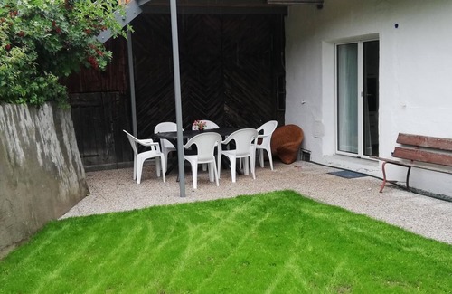 We have newly renovated the ground floor apartment in the old farmhouse and created a patio on the courtyard side of the house has direct access from the kitchen, and from the patio you can via a staircase steps to the large garden, which invites you to play or just to relax.