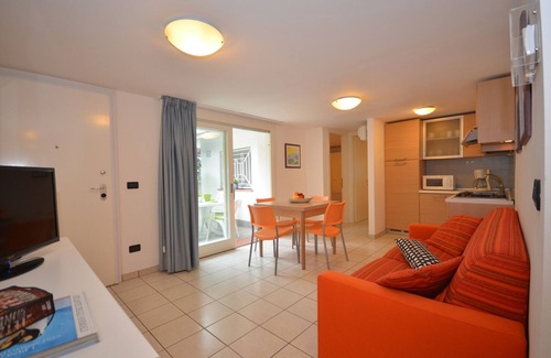 The holiday apartment is located in an apartment house and is furnished in a modern and functional style. Also due to its quiet location the domicile is popular. Available for shared use: Washing machineLocationLignano. The landlord does not live in the house or on the property. Parking (for 1 car) is available on the property. Specialair conditioning.Facilities: safe. TV reception takes place via satellite.For your safety, the accommodation is equipped with CO2 detector and fire extinguisher. Dogsallowed, EUR 40.00/pet per stay. DistancesShopping 400 m, restaurant 450 m, town center 300 m. In summer: Bathing possibility (beach 150 m in Lignano). DivisionHoliday apartment, 1 floor, 3 rooms (including 2 bedrooms), 55 sqm, in total 6 beds (including 2 additional beds), on request additionally 1 child up to 2 years in a baby cot. RoomThe entrance to your holiday apartment is located on the ground floor. Living/bedroom with 2 additional beds on double sofa bed and TV. Bedroom with 1 double bed and 1 baby cot. Bedroom with 2 single beds. Kitchenette in the living & bedroom with gas stove, fridge, microwave and coffee machine. Bathroom with shower and WC. Terms of lease and pricesIncluded in the priceair conditioning, parking place, electricity, gas, water, heating, final cleaning, beach service (2 sunloungers, 1 parasol). Side costs-Costs on the spot:/Obligatory:final cleaning of the kitchen to be carried out individually. local tax by local tariff (if charged).On request:bed linen 11 € per person per first time use and changing. hand towels 10 € per person per first time use and changing. baby cot – please order at booking 5 € per bed per day. high chair - please order at booking 3 € per piece per day. buggy 3 € per piece per day.Deposit:EUR 100,-/object