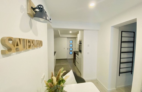The stylish, modern, and centrally located apartment in the city center was completely renovated in 2022. It offers high-quality comfort features including underfloor heating, a covered terrace with a large charcoal grill and barbecue accessories, sun lounger, garden furniture, a spacious bathroom with shower, double washbasin and washing machine, clothes drying rack, cordless vacuum cleaner, floor cleaning set, and a fully equipped kitchen. The kitchen includes a dishwasher, ceramic hob, oven, microwave, filter coffee machine, coffee pod machine, kettle, toaster, stand mixer, fridge with freezer compartment, dining area, ironing board, and iron.