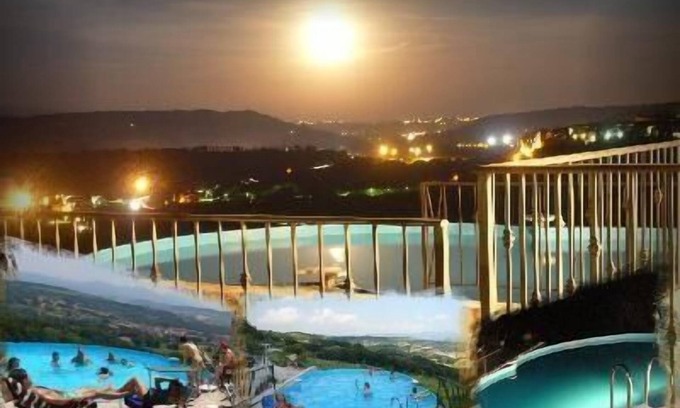 Surrounded by lush greenery, woods, and rolling hills, it offers breathtaking views of the valley and overlooks Orte, a charming medieval city.