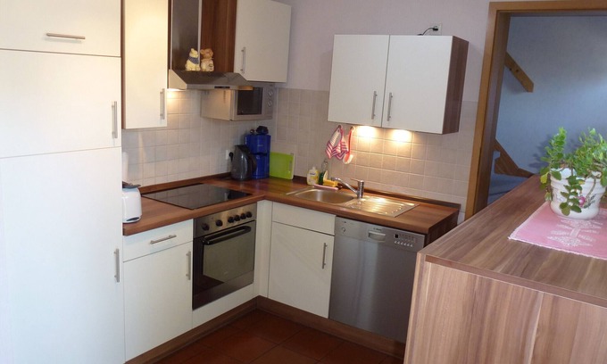 The holiday apartment Ferienwohnung "Petersen - 1" in Uelvesbüll is the perfect accommodation for a stress-free holiday with your loved ones. This 2-storey property consists of a living room, a fully-equipped kitchen, 2 bedrooms, and 1 bathroom, and can accommodate 6 people. On-site amenities include high-speed Wi-Fi (suitable for video calls), a TV, a washing machine, and a dishwasher. A table tennis table is also available on the premises. A baby cot is provided.