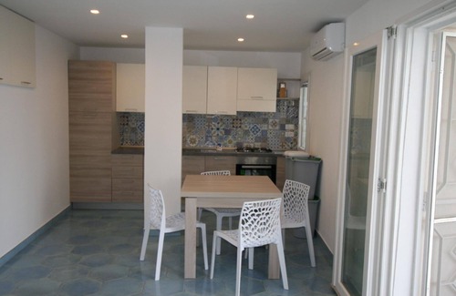 Studio flat in semi-detached villa by the sea with independent garden and terrace, direct access to the beach, 3 km from the village. The studio apartment is located on the ground floor of the garden of a two-storey villa. It has a large furnished terrace, sea view, for exclusive use, also equipped with a barbecue, and has direct access to the beach, which is only a few steps away.
