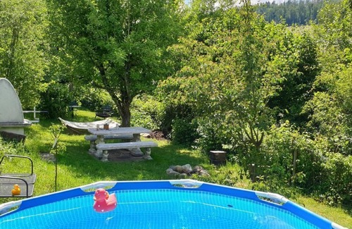 There is further seating on the lower lawn. You can use the fireplace for a campfire, barbecue, enjoy nature and in summer there is an above-ground pool in the garden (unfortunately it is not allowed to build).