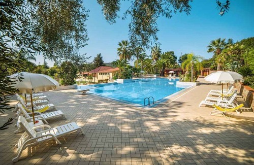 The residence is located on a covered with olive hill, surrounded by Mediterranean vegetation. Access is via a side road (asphalted). Parking is available on the property. Specialelectric heating.Facilities: baby cot, internet access (WLAN) and safe. TV reception takes place via antenna. TV channels only in local language. PoolAll pools are available for shared use. Outdoor pool (usable from end of May to end of September, 13 m x 25 m, depth 2,1 m). Children's pool (6 m x 12 m, depth 0,5 m) and paddling pool. WellnessIn the complex: solarium. LeisureIn the complex: tennis (1 court), table tennis and boccia / petanque. Animation for children from 5 years. Adult animation. Entertainment and miniclub from 14.06.-07.09. Dogsallowed. Free of charge. DistancesShopping 950 m, restaurant 900 m, town center 3,8 km. railway station in Centola 6,8 km. pharmacy in Coppola 800 m. bank in Intesa San Paolo 3,5 km. discotheque in The Dune 4 km. Pizzeria 750 m. Sport - and leisure center 250 m. Bus stop 950 m. In summer: Bathing possibility (beach 1500 m in Arco Naturale featuring sand, gravel and rocks). fishing, boat rental each 1450 m in Arco Naturale. dog beach in Bau Bau beach 3,5 km. tennis in Centro sportivo ricreativo 250 m. horse riding in La Staffa 1100 m. diving in Palinuro Sub Diving Center 5,8 km. There are many excursions available: historical, cultural excursions (Pompei, Vesuvio, Paestum and Velia), visit of the interior (Certosa di Padula), nature reserves (oasis WWF Morigerati) or by boat to caves (Capo Palinuro, Baia degli Infreschi). In addition, typical cultural dinners and oil tasting are offered. DivisiónHoliday apartment, 1 floor, 3 rooms (including 2 bedrooms), 55 sqm, in total 6 beds (including 2 additional beds). HabitaciónThe entrance to your holiday apartment is located on different floors. Bedroom (12 sqm, not heatable) with 2 single beds. Bedroom (15 sqm, not heatable) with 1 double bed. Living/bedroom (18 sqm, not heatable) with 2 additional beds on double sofa bed, TV, dining area (6 seats) and access to the terrace (20 sqm, garden furniture, 1 table, 5 chairs, 3 sunbeds). Cooking nook in the living room (not heatable) with gas stove, oven, extractor hood and fridge. Bathroom (4 sqm, not heatable) with shower, WC and bidet. ManutenciónPizzeria with a small restaurant: open from 16.06.2018 to 08.09.2018, only in this time it is possible to book half board on the spot (Italian breakfast, lunch or dinner with a bottle of water). Tarjetas de créditoVisa, MasterCard. Condiciones y preciosEn el precio incluidoOutdoor pool, solarium, parking place, electricity, gas, water, final cleaning, local tax (under 14 years), bed linen, pool (31.05.25-28.09.25, 30.05.26-27.09.26), table tennis, tennis, solarium (31.05.25-28.09.25, 30.05.26-27.09.26), children animation (14.06.25-07.09.25, 13.06.26-06.09.26), Wireless Internet access. Costes adicionales-Frais sur site:/Obligatoire:local tax by local tariff (if charged).Sur demande:baby cot 25 € per bed per week. washing machine 5 € per stage of washing programme based on usage. hand towels 4 € per person per first time use and changing. beach service (2 sunloungers, 1 parasol) 60 € per package per week (31.08.25-13.09.25, 13.06.26-27.06.26, 30.08.26-12.09.26), beach service(2 sunchairs, 1 umbrella) 75 € per package per week (05.07.25-02.08.25, 23.08.25-30.08.25, 04.07.26-01.08.26, 22.08.26-29.08.26), beach service(2 sunchairs, 1 umbrella) 95 € per package per week (02.08.25-23.08.25, 01.08.26-22.08.26).Caution:EUR 150,-/object