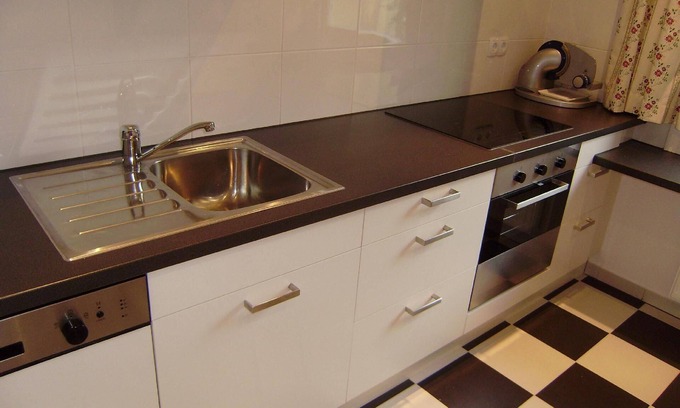 The apartment provides 82m² of living space and comprises two double bedrooms, a living and dining room, a separate kitchen, a shower room, a separate WC and a laundry room. Each room is accessed directly from the hallway. The two bedrooms are of the same size and each have two single beds and wardrobes for your clothing. One of the two rooms also has a flatscreen TV for entertainment before going to sleep. The living room provides a two-seater sofa and two armchairs for relaxing together after a day trip. A large flatscreen TV with cable channels (ca. 100 TV channels) and a DVD player is provided, along with an antique living room cupboard and a dining table with four high-backed chairs for enjoying meals together. The separate kitchen is tiled and fully-equipped, including a dishwasher, four-zone ceramic hob with an oven, a fridge with a freezer compartment, a microwave etc. The bathroom is fitted with under-floor heating and a towel radiator, as well as a walk-in shower (with a folding seat) and a washbasin. The bathroom and WC are separate. The laundry room has a washing machine with a dryer function. The apartment has been renovated and completely newly furnished. The kitchen, bathroom and WC are tiled, while the other rooms have wooden flooring. Supplementary beds are available for a holiday for four adults and two children.