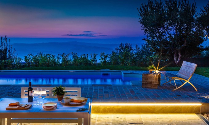 The house is the result of the overall renovation of an old building is a new building of 2005, independent, consisting of a ground floor where is the apartment consists of the living room and kitchen, three bedrooms, one double with bathroom, one quadruple with bathroom and a family room (double bed and bathroom), basement garage and basement with direct access to the pool. Outside is a lovely garden and a beautiful newly built salt water pool. The house can accommodate up to 9 people, also ideal for two families having two designated areas.