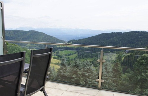 Mountain holidays: hiking, skiing, swimming, exercise, wellness, relaxation, and much more, in a picturesque landscape, pure nature! Relax in the sauna to improve your well-being or immerse yourself in the pleasant waters of the panoramic indoor pool. The holiday property is located at 1,200 meters above sea level, surrounded by lush forests and on a sunny hillside with a stunning panoramic view of the surrounding mountain ranges. Enjoy the delicious regional delicacies and end the day with a good glass of wine on the balcony, basking in the glow of the setting sun and the shadows of the surrounding mountains.