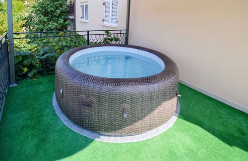 The holiday apartment is located in a detached single-family home and is furnished in a functional style. The property is located in a residential area. Available for shared use: barbecue facilities.LocationPula. The holiday apartement is located on a enclosed garden plot with meadow and flowers. The landlord lives permanently in the house, but uses a seperate entrance. Access is via a side road. Parking (for 2 cars) is available on the property. Specialair conditioning.Facilities: internet access (WLAN). TV reception takes place via satellite. PoolAll pools are available for exclusive use. Children's pool (diameter 2 m, depth 0,70 m) and paddling pool. Dogsallowed, EUR 10.00/pet per day. DistancesShopping 100 m, restaurant 100 m, town center 3 km. Pula: discotheque 1000 m, pharmacy 200 m and cinema, bank each 3 km. In summer: Adriatic Sea 700 m in Pula (beach 700 m in Pula featuring gravel, rocks and bathing plateaus). horse riding in Medulin 10 km. Pula: diving 1000 m, tennis 2 km and boat launch 900 m. Surf Centre 12 km. DivisionHoliday apartment, 1 floor, 5 rooms (including 3 bedrooms), 84 sqm, in total 7 beds (including 1 additional bed). RoomThe entrance to your holiday apartment is located on the ground floor. Living room with 1 additional bed on couch/sofa, TV and access to the balcony (20 sqm, garden furniture). Dining room with sitting area and dining area. Bedroom with 1 double bed. Kitchen with dining area, gas stove, electric stove, fridge (icebox), coffee machine, toaster and electric kettle. Bathroom with bathtub, washing machine and WC. Separate toilet with WC. 2 bedrooms each with 2 single beds. Terms of lease and pricesIncluded in the priceinternet access, air conditioning, parking place, electricity, water, final cleaning, bed linen, hand towels, Wireless Internet access. Side costs-Additionally(Payable when booking)/registration fee obligatory 6,30 € per person per stay. additonal fee for short-term stays (less than 4 nights) obligatory 20% per stay. local tax.Deposit:EUR 150,-/object