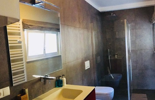 Your vacation object: The landlord does not live in the house or on the property. The facilities are at your disposal for exclusive use. Relax outdoor at the terrace with sunlounger. Your fitness, you can keep busy with table tennis. Your holiday apartment: Your holiday apartment offers 1 floor, 2 rooms (from which 1 bedroom), is 70 sqm and can accommodate up to 6 persons. On colder days your holiday apartment can be heated with central heating (gas). The entrance leads over an internal stair directly in the living room/bedroom. The rooms are divided as follows: Living room as intersecting room, 20 sqm and with dinette and TV. The dinette offers space for 6 persons. Bedroom with 1 double bed and 2 bunk beds. Cooking nook in the living room as intersecting room and with dishwasher, induction cooker, exhaust hood, refrigerator (freezer), coffee machine, toaster and electric water boiler. Bathroom with shower, WC, bidet and window. Bathroom with shower, 1 washbasin, WC, bidet, hairdryer, window and washing machine. In addition, your holiday apartment is equipped with washing machine. TV or radio channel can be received per satellite. Pets: erlaubt, EUR 20.00/Tier und Woche.