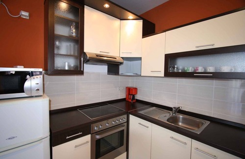 The holiday apartment is located in an apartment house and is furnished in a modern and functional style. The property is located on the outskirts. Also due to the view over the sea from the property and its quiet and sunny location at the water the domicile is popular. Available for shared use: barbecue facilities, terrace and garden furniture.LocationSoline, district Soline. The holiday apartement is located on a enclosed garden plot with flowers and shrubs, bordered by a hedce and a wall. The landlord lives only occasionally in the house, but uses a seperate entrance. Apartment (60m²) for 4 persons (with possibility of 1 additional beds), 50m from the sea. This beautiful house provides a nice vacation near the sea. Apartment can hold up to 5 people. Internet and air condition are included in the price. Access is via a side road (asphalted). Parking (for 1 car) is available on the property. Specialair conditioning.Facilities: internet access (WLAN) and washing machine. TV reception takes place via satellite. Dogsnot allowed. DistancesShopping 550 m, restaurant 100 m, town center 1200 m. Places near: Dobrinj, Vrbnik, Crikvenica, Biserujka cave; Malinska 12 km, City of Krk 25 km, Rijeka 55 km, Omisalj Airport 20 km, Heilschlam 700 m. In summer: Adriatic Sea 70 m in Soline (beach 70 m in Soline featuring gravel). DivisionHoliday apartment, 1 floor, 3 rooms (including 2 bedrooms), 55 sqm, in total 5 beds (including 1 additional bed). RoomThe entrance to your holiday apartment is located on the 2nd floor and leads over an internal staircase. 2 bedrooms each (12 sqm) with 1 double bed. Living/bedroom with 1 additional bed on couch/sofa, sitting area, TV, access to the balcony (12 sqm, garden furniture, 1 table, 4 chairs) and with sea view. Kitchen with dining area (4 seats), electric stove (ceramic hob, 4 plates), oven, extractor hood, fridge (icebox), microwave, coffee machine and access to the balcony. Bathroom with washing machine, shower, 1 washbasin and WC. Terms of lease and pricesIncluded in the priceinternet access, air conditioning, parking place, electricity, gas, water, final cleaning, bed linen, Wireless Internet access. Side costs-Additionally(Payable when booking)/additonal fee for short-term stays (less than 4 nights) obligatory 30% per stay. local tax.Costs on the spot:/Obligatory:registration fee 4 € per person per stay.Deposit:EUR 150,-/object