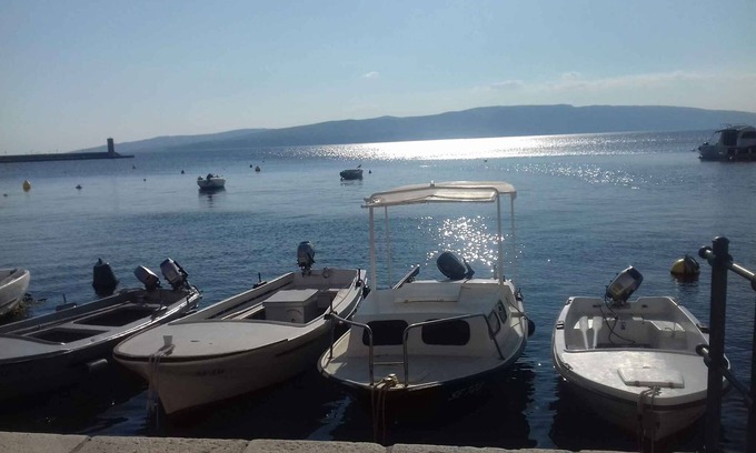 The holiday apartment is located in a standig individually detached house and is modern furnished. The property is located on the outskirts. The domicile is also popular because of the view over the mountains from the property and the quiet and sunny location. For use are available: grill possibility, terrace, pavilion and garden furniture.LocationSenj. The holiday apartement is located on a 500 sqm, closed garden plot with meadow, flowers, bushes and trees, limited by a fence and a hedce. The landlord lives permanently in the house, but uses a seperate entrance. The access goes via a path (asphalted). Parking lot on the property. Specialair conditioner. Facilities: internet access (WLAN). TV reception takes place via satellite. Dogsnot allowed. DistancesShopping opportunity 10 km, restaurant 100 m, town center 1000 m. airport in Krk 45 km. discotheque, cinema, doctor, pharmacy, bank each 1000 m in Senj.In summer: Adria 1000 m in Senj (beach 1000 m in Senj with sand, gravel, stones, rocks and bathing plateaus). Senj: diving, water sports, boat rental, boat launch each 1000 m. horse riding 2 km. DivisionHoliday apartment, 1 floor, 3 rooms (including 2 bed rooms), 55 sqm, in total 4 beds. RoomThe entrance in your holiday apartment is located on the 1st floor and leads over an outside staircase directly in the hallway. Eat-in kitchen (walk-through room) with sitting area, TV and dining area. 2 bedrooms each with 1 double bed and access to the balcony (8 sqm, covered, garden furniture). Kitchen with TV, gas stove (4 flames), electric stove (2 plates), oven, dishwasher, fridge (icebox), coffee machine, toaster and electric kettle. Bathroom with washing machine, shower, 1 sink, WC, bidet, hairdryer and window. Terms of lease and pricesIncluded in the priceinternet access, air conditioning, parking place, electricity, gas, water, final cleaning, bed linen, hand towels, Wireless Internet access. Side costs-Additionally(Payable when booking)/local tax.Deposit:EUR 100,-/object