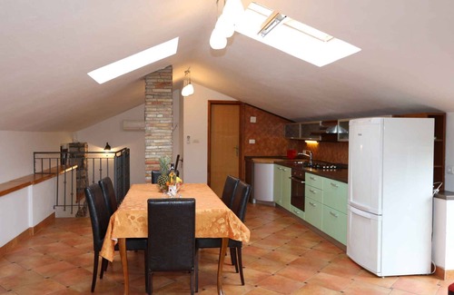 The holiday apartment is located in a single-family home built in 1960, was renovated in 2008 and is furnished in a modern, rustic and functional style. The property is located in a residential area, in the town centre. Also due to the view over the sea from the property and its quiet and sunny location the domicile is popular. Available for shared use: barbecue facilities, terrace and garden furniture.LocationŠilo. The holiday apartement is located on a 400 sqm open garden plot with flowers and shrubs. The landlord lives permanently in the house, but uses a seperate entrance. House is located in Šilo, 100m from the sea. This beautiful newly renovated stone house provides a luxury vacation near the sea. House, as well as the apartment, is very well maintained and modernly decorated. Apartment(100m2) on two floors which can hold up to 7 people. Apartment is nicely decorated and fully equiped. It has 3 bedrooms, 2 bathrooms, a spacious living room, big and fully equipped kitchen, and a spacious dining area. House has 2 balconies with a beautiful sea view.Internet is provided. Apartment has two air conditioning. Guests have a parking space. The old stone house was renovated and modern. Access is via a side road (asphalted, length 150 m). Parking (for 3 cars) is available on the property. Specialair conditioning.Facilities: internet access (WLAN) and washing machine. TV reception takes place via satellite. Dogsnot allowed. DistancesShopping 190 m, restaurant 100 m, town center 100 m. railway station in Fiume 55 km. Malinska: bank 15 km and discotheque 17 km. Main road 30 m. Nearby Dobrinj, Museum are 5 km, Vrbnik, Crikvenica and the cave Biserujka, 6 km. Malinska 17 km, Krk 25 km, Rijeka 55 km, Omisalj Airport 20 km, mud 5 km away.