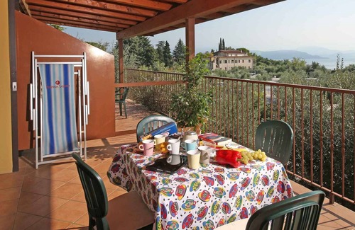 The holiday apartment is furnished in a typical country style. The property is located in a holiday resort. Also due to the view over the lake from the property and its quiet location at the water the domicile is popular. Available for use: parasol, sun lounger, children's playground and climbing frame.Holiday resort80 accommodations, reception, 1 restaurant, pizzeria, bar, common room, internet (WLAN), supermarket and laundry. LocationManerba del Garda, 128 m above sea level. The holiday apartement is located in a holiday complex, on a 70000 sqm enclosed garden plot with meadow, flowers, shrubs and trees. In the complex is GAR MAN 001 and cottages, bungalows, apartments and also an area for camping and caravanning. The Manerba on the northeastern shore of Lake Garda consists of many small villages, idyllic lined up surrounded by olive groves and vineyards together. The facility is located in the most beautiful bay on Lake Garda with old olive trees. Access is via a path (asphalted). Parking is available on the property. Specialair conditioning.Facilities: internet access (WLAN). TV reception takes place via satellite.For your safety, the accommodation is equipped with CO2 detector and fire extinguisher. PiscinaAll pools are available for shared use. Outdoor pool (usable from mid May to mid September, 10 m x 25 m, depth 1 m). There are 2 outdoor swimming pools available (May to September). In July and August is another pool. LoisirIn the complex: gym, tennis (1 court) and table tennis. Caninot allowed. OdległościShopping 1000 m, restaurant 1000 m, town center 1000 m. Center of San Felice 1 km, bus stop 50 m, 1000 m bars. In summer: Lake Garda (beach featuring gravel and stones). boat launch in san felice 100 m. Surfboard depot on the beach. Directly on the lake there is a jetty. Mooring for Motorbooteund buoys. Podział wnętrzaHoliday apartment, 2 floors, 3 rooms (including 2 bedrooms), 50 sqm, in total 6 beds (including 2 additional beds). PomieszczeniaGround floor and 1st floor are connected to an external staircase.Ground floor: Bedroom with 1 double bed. Bathroom with shower and WC. 1st floor: Bedroom with 1 double bed. Living/bedroom with 2 additional beds on couch/sofa, TV and access to the balcony (garden furniture). Cooking nook in the living & bedroom with dining area, gas stove (4 flames), fridge and microwave. Bathroom with shower and WC. Karty kredytoweVisa, MasterCard, Eurocard. Warunki i cenyW cenie już zawarteair conditioning, parking place, electricity, gas, water, final cleaning, bed linen, tennis, Wireless Internet access. Koszty dodatkowe-Koszty na miejscu:/Obligatoryjnie:dish towels to bring along. local tax by local tariff (if charged).Na życzenie:children bed 4 € per bed per day. hand towels 7 € per person per first time use and changing. boat dock 25 € per boat per day.Kaucja:EUR 100,-/object