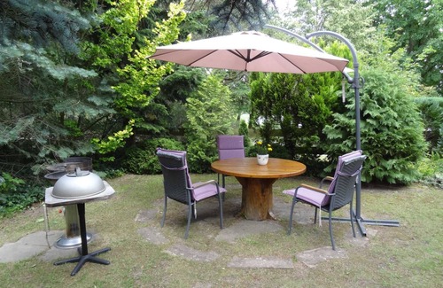 In the outdoor area (about 100 square meters) are available: carport, sitting area with table and chairs, parasol, private fishing and bathing jetty with fishing boat rental - about 75 meters from the apartment.