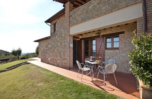 The holiday apartment is located in a detached single-family home and is furnished in a typical country style. The property is located in a residence. Also due to its quiet location at the edge of the forest the domicile is popular. For use, the following are available: children's playground and barbecue facilities.Holiday resort1 restaurant and internet (WLAN). LocationGualdo Cattaneo, 450 m above sea level. The holiday apartement is located in a residence, on a garden plot. The residence consists of 3 houses from the end of the last century. Professionally executed renovation. The main building was divided into 8 apartments (Bi-Locale) 2 + 2. The second building consists of 2 apartments (Tri-Locale) 4 + 2 and in the manor house are the restaurant and the rooms. The villa is located in the heart of Umbria - between Assisi and Perugia, Todi and Montefalco. Walks in the area with pic-nic places. Access is directly from the main road (asphalted). Parking (for 1 car) is available on the property. Specialair conditioner, electric heating. Facilities: cot and internet access (WLAN). TV reception takes place via satellite. PoolOutdoor pool (7 m x 14 m, depth 1.50 m, for common use). Leisure1 bicycle. In the complex: mini golf, table tennis and bike rental. There is also a football pitch, zoo and hiking trails with picnic areas. Dogsnot allowed. DistancesShopping opportunity 9 km, restaurant 2,6 km, town center 9 km. DivisionHoliday apartment, 1 floor, 2 rooms (including 1 bed rooms), 60 sqm, in total 4 beds (including 2 additional beds). Room Bedroom with 1 double bed. Living/bedroom with 2 extra beds on couch/sofa, TV and access to the terrace (parasol). Cooking nook with extractor hood, dishwasher, fridge (icebox), coffee machine and toaster. Bathroom with shower, WC, bidet, hairdryer and window. Terms of lease and pricesIncluded in the priceOutdoor pool, internet access, bicycle, air conditioning, parking place, electricity, gas, water, pool, table tennis, mini golf, barbecue, Bed linen (weekly change), hand towels (weekly change), baby cot – please order at booking, Wireless Internet access. Side costs-Costs on the spot:/Obligatory:final cleaning 30 € per object per stay. local tax by local tariff (if charged).On request:Breakfast - please order at booking 9 € per person per day. Breakfast - please order at booking 5 € per child under 9 years per day. laundry travel service 15 € ), For a fee: heating, Breakfast - please order at booking under 3 years.Deposit:EUR 150,-/object