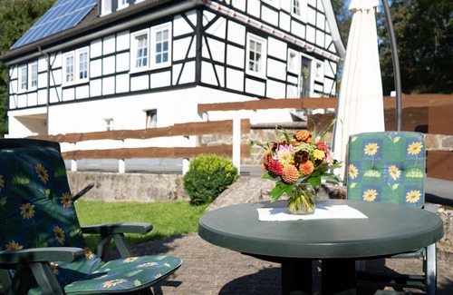 You have access to a private outdoor area with a garden and open terrace. The apartment is located in a quiet area with direct access to hiking and cycling trails. The Winterberg ski area is only 5 km away, and public transport can be reached within a 5-minute walk. From there, there are hourly connections to Winterberg and Schmallenberg. Parking is available on the property. Families with children are warmly welcome.