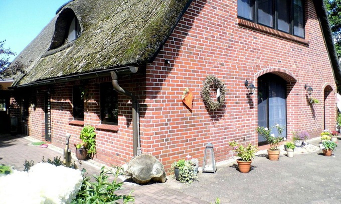 The apartment Birkenfee located in our beautiful thatched roof house in Neulandermoor! On 60 square meters. spread a bedroom with king-size bed, a living room with double sofa bed, kitchen with Cerankochstelle, oven, refrigerator, microwave, coffee maker, toaster, kettle. The bathroom has a shower tray. Washing machine, television and Wi-Fi are available. Parking and garaging for bicycles is available as well as a beautiful outdoor area. Sheets and towels are with the apartment. From here there are beautiful bike paths along the Elbe. The sandy beach is 6km. away. The historic city of Stade is reached by car in. Beautiful destinations are the Kreidesee where you can join a U-Bottfahrt or Schwebefähre cozy restaurant both in 12 km away. remote Hemmoor. The Elbfähre in Wischhafen (4km.) Runs every 30 min. over to Gluckstadt Schleswig Holstein. If you like the sea to go by car to Cuxhaven to on from there with the boat to Helgoland. In the apartment there are flyers to all Attractions!