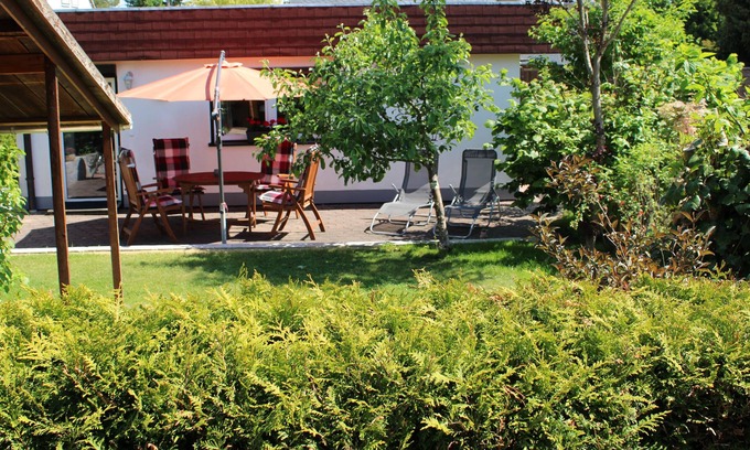 You live in a comfortable and functionally furnished bungalow with a large south-facing terrace, kitchen, bedroom, children's room, bathroom with toilet and shower. The bungalow is on the whole floor and can be entered without steps. The terrace has a seating area with a parasol, a fixed grill and a lawn. Our vacationers appreciate that they are for themselves and have their own area.