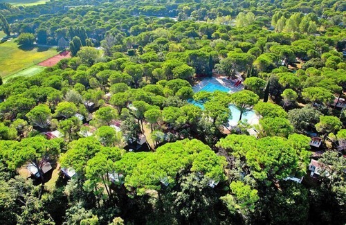 On the wooded grounds of a 50-hectare natural park on the Grado Lagoon: holiday resort for the whole family. Young and old can refresh themselves in the 300 square meter pool, with the water slide providing the fun factor. If you prefer to swim in the lagoon, you can easily reach the lagoon's flat sandy beach via a pedestrian crossing. The accommodation types A-E (1-5) are near the reception, type F-H (6-8) are near the beach. The area of the holiday complex borders directly on the gently sloping sandy beach and is only five kilometers away from the old town of Grados. You can easily reach the lagoon city by car via a dam. Countless shops, restaurants and bars await you in the beautiful pedestrian zone, providing plenty of variety. The following applies to the system: - 185 residential units - Reception - Restaurant - Pizzeria - Supermarket - Bar - Washing machine (for a fee) - Tumble dryer (for a fee) - Animation (seasonal, July & August) Activities nearby: A well-signposted cycle path runs right past the facility, so you can explore your surroundings at a leisurely pace from a different perspective. Nearby is the famous archaeological site of Aquileia, which you should definitely visit. The site was one of the most important cities of the Roman Empire and is one of the largest archaeological sites in Italy. Hobby ornithologists will get their money's worth in the Valle Cavanata and Foci dell'Isonzo nature reserves. A day trip to nearby Venice is also possible, it is best to go there by train; You will reach the lagoon city in about an hour and a half and will not have any parking problems. Other destinations for day trips are Trieste, Udine, Pordenone, Cividale and Gorizia