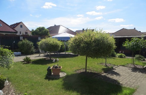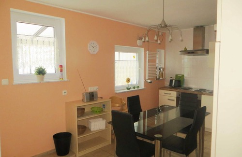 The apartment freckles is located on the ground floor in the street to the youth hostel. It has a small conservatory, a kitchen with oven, fridge and dishwasher, a living room with sofa and TV, a bedroom with double bed and wardrobe and a bathroom with vanity, toilet and shower. In addition, the apartment includes a parking space and a shared garden with terrace and barbecue.