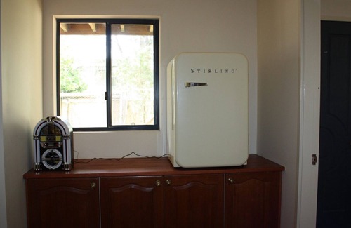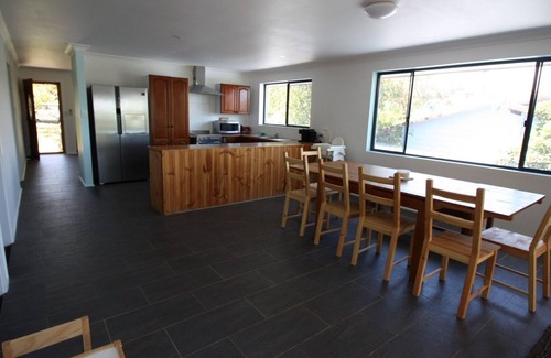 At entry level is a loungeroom with air-conditioning and ceiling fan and an open plan kitchen and dining area leading out to a undercover rear deck. The kitchen has a K-fee pod machine and high chair as well.