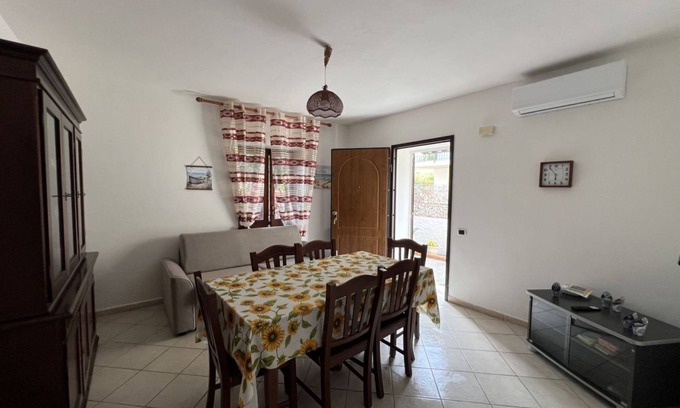 Fabulous holiday home just 150 meters from the sea, characterized by a private internal courtyard. It has a comfortable living area with a sofa bed, a fully equipped kitchen, a double bedroom and a bedroom with two single beds. Equipped with air conditioning for maximum comfort, private parking and a comfortable outdoor shower to cool off after a day in the sun. Ideal for a peaceful and relaxing holiday near the sea.