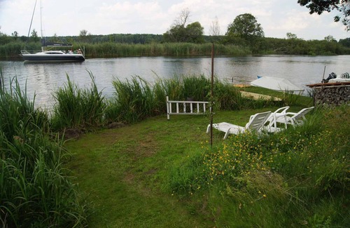 We wish you a pleasant and relaxing stay! Cottage near the water, view from the property to the Spree. Whether relaxing holidays, family vacations or active sports holidays, the Lower Lusatia and the Spreewald offer a good mix of everything. Kummerow can be the starting point for cyclists, boaters, fishermen, hikers and all nature lovers. The comfortable holiday home is located in the center of Kummerow amid the idyllic nature reserve Spreewiesen on the Spree. Access is directly from the main road. Parking is available on the property. Specialelectric heating, underfloor heating. Fans.Facilities: high chair, internet access (WLAN), washing machine and dryer. Dogsallowed, EUR 6.50/pet per day. DistancesShopping 5 km, restaurant 5 km, town center 5 km. Friedland Mark 5km. In summer: Spree 50 m in Kummerow. DivisionHoliday home, 2 floors, 3 rooms (including 2 bedrooms), 65 sqm, in total 7 beds (including 2 additional beds), on request additionally 2 children up to 2 years in a baby cot. RoomGround floor: Living room with 2 additional beds on couch/sofa, TV, fireplace, radio and access to the terrace (garden furniture, parasol). Kitchen in the kitchen-diner with electric stove (ceramic hob, 4 plates), oven, extractor hood, dishwasher, fridge (icebox), microwave, coffee machine, toaster and electric kettle. Bathroom with shower, 1 washbasin, WC, hairdryer and window. 1st floor: Bedroom with 1 double bed and radio. Bedroom with 1 double bed, 1 single bed and radio. Storeroom. Terms of lease and pricesIncluded in the priceinternet access, parking place, electricity, water, sunloungers, bed linen (first usage), hand towels (first usage), Wireless Internet access. Side costs-Costs on the spot:/Obligatory:final cleaning 90 € per object per stay. local tax by local tariff.Deposit:No deposit.