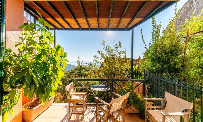 Overlooking the sea, the holiday home "Balis Panorama" in Corfu impresses guests with its fantastic panoramic views.