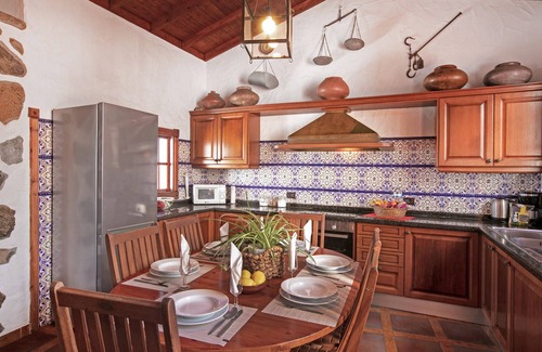 The whole house is furnished with wooden ceilings and exposed beams, the typical artistic tiles and natural stone elements and exudes the authentic charm of the Canary Islands.