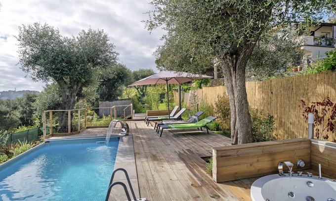 This property offers a private outdoor space with a pool, whirlpool, garden, and outdoor shower. Additionally, guests have access to an outdoor kitchen with a barbecue.