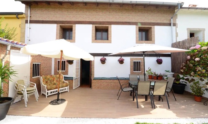The holiday home Casa rural cerca a playas is located in Arnuero and is perfect for an unforgettable holiday with your loved ones. The 3-storey property consists of a living room, a kitchen, 6 bedrooms and 3 bathrooms and can therefore accommodate 13 people. Additional amenities include Wi-Fi, a TV as well as a washing machine. This accommodation does not offer: air conditioning. This vacation rental offers a private outdoor space with a pool, garden, 2 open terraces, a balcony, and a barbecue.