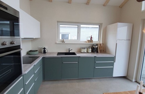 NEW, first occupancy May 2021! Our new, detached “eco” house is located in idyllic surroundings. Sustainable building materials, the avoidance of fossil fuels, green electricity, a reflective, heat-repellent roof, the use of rainwater for garden irrigation, etc. are just as much a part of the concept as good country air and lots of holiday joy. The house offers enough space for 6 people and has three bedrooms. The high-quality furnishings are stylish and comfortable at the same time. Large garden, two terraces (one covered), garden sauna, fireplace, storage space for your bicycles. A relaxed holiday with family and friends is guaranteed.