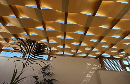The Entrance Door opens into the Main Hall where the Living Room welcomes us, the most modern room of the house, characterized by soft and relaxing tones, elegant and simple with ceilings more than four meters high. The house is furnished with attention to detail and a choice of refined furniture that create a soft atmosphere, Black Marquinia floor in the first rooms, then ancient Basoli in Pietra Leccese until you get to the staircase that leads to the mezzanine floor and first floor. The mezzanine floor in white wood with parquet Afrormosia is equipped with a sofa bed, sitting area and private garden where you can enjoy the beautiful evenings Salento. The first floor is presented with a large open space in Chianca Leccese from which you access the two double bedrooms with en suite bathroom equipped with hydro-massage column, the large open space allows you to dine outdoors and enjoy a good barbecue with panoramic views of the small village.