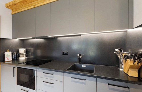 The apartment offers 2 nice balconies with a table and chairs, where you can start your day with a cup of coffee while admiring the breathtaking views over the mountains and the surrounding landscape. Guests can also access the shared garden where they can relax under the sun with a good book in the summer and enjoy the fresh air. This is also the perfect place for children to play, as there is also a playground with a swing and a sandbox.