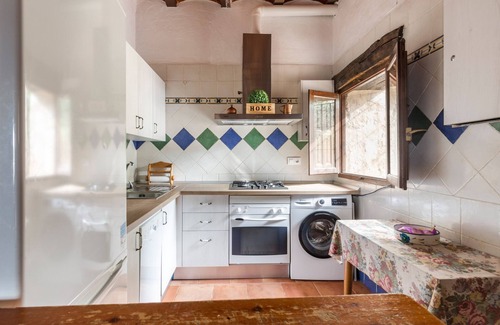 This vacation rental features a private pool (open from May until September), garden, open terrace, covered terrace, and barbecue area. An additional bathroom can be found outside as well.