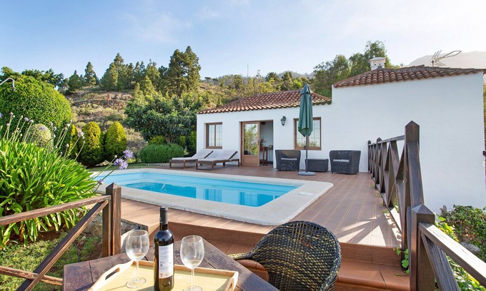 With a view of the Atlantic, the holiday home El Lomito in Tijarafe is perfect for a relaxing holiday. The 60 m² property consists of a living room, a fully-equipped kitchen, 1 bedroom and 1 bathroom and can therefore accommodate 3 people. Additional amenities include high-speed Wi-Fi (suitable for video calls) with a dedicated workspace for home office, a TV, air conditioning as well as a washing machine. A high chair is also available. This vacation rental offers a private outdoor space including a pool, garden, open terrace, covered terrace, barbecue, and outdoor shower.