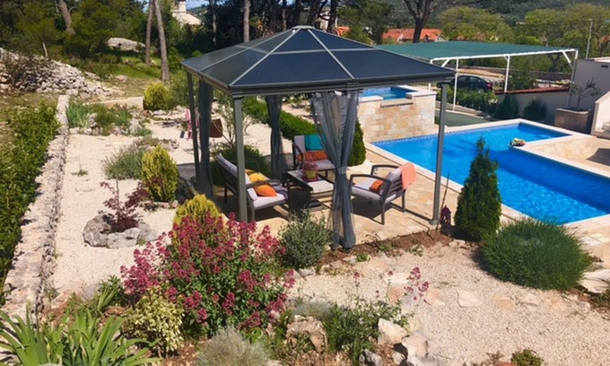 Holiday home with Ela is situated in peaceful village in the heart of the island of Brač called Dračevica. The property provides private heated outdoor swimming pool and spacious terrace with outdoor dining area. Spacious garden with basketball playground, trampoline, tennis table and barbecue facilities is also available, so as private hot tub. Free private parking is available on site, reservation is not needed. Pets are allowed with an extra charge of 7 euros per day / pet. This modern three-bedroom holiday home features free Wi-Fi and air-conditioning and LCD cable TV. Kitchen is fully equipped and comes with combined dining area and living room. Bathrooms are fitted with showers and hairdryer. Washing machine and ironing facilities are at guests' disposal. The pool is heated and surrounded with spacious terrace equipped with outdoor furniture, sunbeds and parasols. Spacious garden with basketball playground, trampoline, tennis table and barbecue facilities is also available, so as private hot tub. Holiday home Ela is located in Dračevica, quite charming and peaceful village on the island of Brač, known for its numerous vineyards. The old center of Dračevica is built in a Mediterranean style with the main square in the town center and a number of streets leading to the houses. Bus station is only 100 m from the accommodation, while the nearest beach and pharmacy can be reached in 6 km range. Closest market can be found within 250 m. Supetar ferry port is 12 km away from the property. Brač Airport is 25 km away while Split Airport is 52 km away.