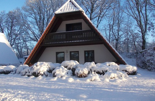 Holiday homes for 4 - 6 people in a small holiday development on the outskirts of Marlow in the immediate vicinity of the bird park. Quiet, wooded location, washing machine, Wi-Fi, parking space, terrace, balcony with garden furniture and barbecue, incl. Bed linen and final cleaning, utilities according to consumption