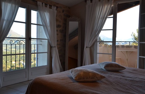 - a double bedroom with a very large bed (180 x 200 cm), panoramic view of the valley from the bed;