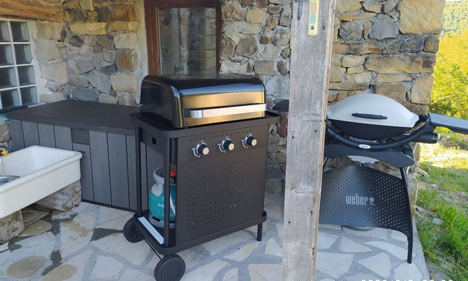 This vacation rental features a private outdoor space with a barbecue. Guests can also enjoy a shared garden, open terrace, and playground.