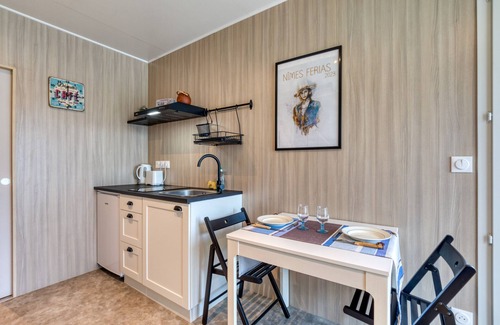 Located in Générac, the holiday home Greenkub has everything you need for a relaxing holiday. The 2-storey property consists of a living room with a sofa bed for 2 people, a kitchen, 1 bedroom and 1 bathroom and can therefore accommodate 4 people. Additional amenities include Wi-Fi as well as air conditioning. Furthermore, a table tennis table and gym equipment are available on the property. This vacation rental offers a private outdoor space with a garden, terrace, barbecue, and outdoor shower.