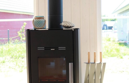Very cosy holiday home - harbour village Zerpenschleuse with fireplace 2nd row to the water Between water and meadow lies this cosy wooden holiday home in Scandinavian style. The holiday home in the harbour village of Zerpenschleuse in the idyllic north of Brandenburg is situated in the second row to the water with a wonderful view over the boats and the nature around the harbour basin. The holiday home is modern and bright in Scandinavian style. Thanks to the gallery-like first floor and the huge panoramic windows that extend from the floor to the roof, the entire house is flooded with light and the view falls again and again and from everywhere on the enchanting landscape. In the immediate vicinity, a rest stop on the canal, as well as cafés and boutiques in the village of Zerpenschleuse await your visit within a radius of approx. one kilometre. The Bernsteinsee lake in Ruhlsdorf (approx. 6 km) is ideal for swimming. The marvellous sandy beach makes for great swimming fun. A little more action is also guaranteed at the water ski centre, where wakeboarding and water skiing are possible and corresponding courses are offered. The Prenden golf course, which is only 15 minutes away by car, offers a change from water sports. In addition to active recreation, the nearby town of Wandlitz (13 km) with its cultural attractions is a popular destination for those seeking relaxation. Berlin is also only 50 km away and can be reached by public transport in just over an hour.