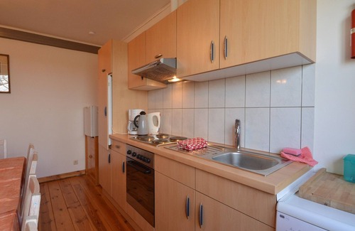Layout: On the 1st floor: (open kitchen(cooker(4 ring stoves), oven, dishwasher, fridge-freezer), Living/diningroom(TV, DVD player), bedroom(double bed), bedroom(single bed, double bed, washbasin), bedroom(double bed, bunk bed, washbasin), bathroom(shower, washbasin, toilet), toilet(washbasin))