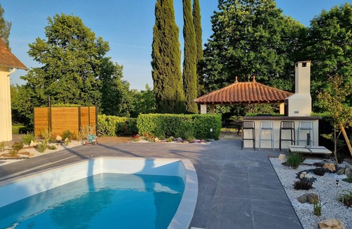 Holiday Home in Blis et Born, Near Perigueux, Dordogne - Large Heated Swimming is located in Blis-et-Born. Holiday Home in Blis et Born, Near Perigueux, Dordogne - Large Heated Swimming provides accommodation, featuring Private Pool, Wellness Facilities, Entertainment, among other amenities. This House features Private Pool, Wellness Facilities, Entertainment, to make your stay a comfortable one.