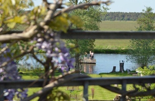 Living in the 12 house village of Breetz, spacious rooms, large living kitchen and 2 bathrooms. On the edge of the small village of Breetz, with a view of the vastness, the former farmhouse is located on an approx. 2900 sqm, large property, with various seating groups and a fireplace, with a great view of the wide landscape. Here is a lounger and playground with a children's tower. The creative cate was acquired in 1999 by a Hamburg artist, renovated and used as a retreat for a creative work for himself and his Hamburg colleagues. Many artistically designed elements in the house and garden testify to this. Our water plot on Löcknitz, 100 m away, can be used for swimming and canoeing. These can be rented.