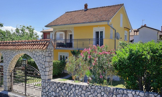 Located just 300 m from a sandy beach and near the center of Šilo, this holiday home is perfect for a family or group of 6. The 115 m² house features 3 air-conditioned bedrooms, 2 bathrooms, an extra toilet, a spacious living room with satellite TV, and a fully equipped kitchen with a dishwasher, oven, and dining area. Enjoy your time outdoors in the private fenced garden (300 m²), relax on the 25 m² balcony, or cool off in the private pool. A dedicated game room (25 m²) includes a PlayStation, table soccer, and a children’s corner, ideal for indoor fun. Two bedrooms have direct access to the balcony, and all rooms offer satellite TV and air conditioning. Additional amenities include a washing machine and private parking. Public transport is available 400 m away, and Rijeka Airport is just 15 km from the property. This home offers the ideal blend of beach proximity, comfort, and entertainment.